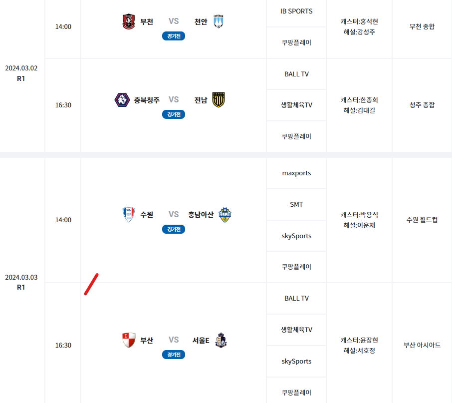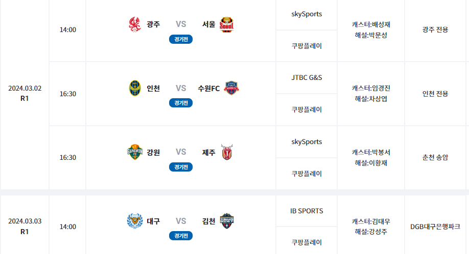 ㅁ K리그 2 다음 경기 일정