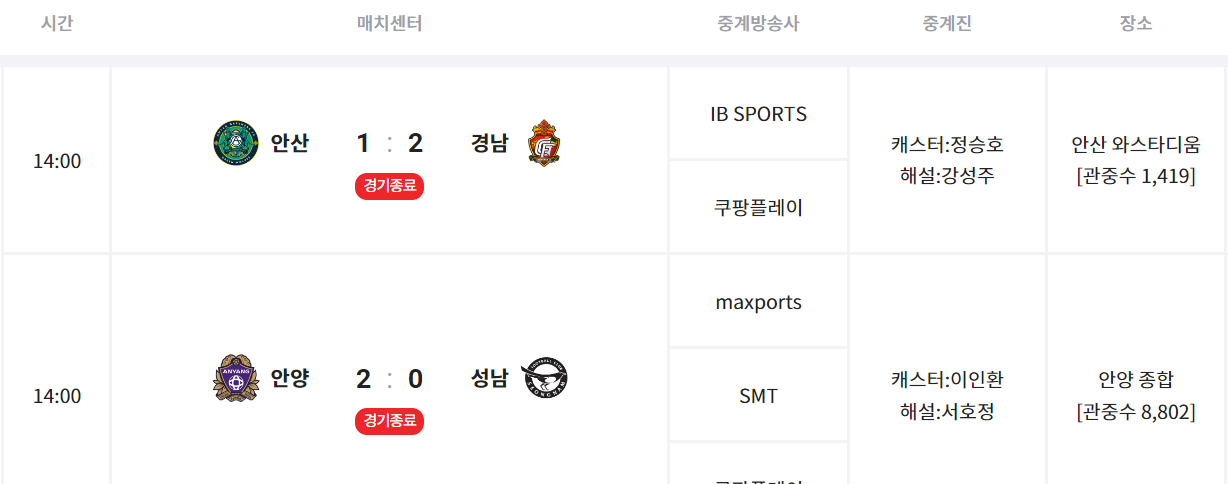 ㅁ K리그 2 경기 결과
